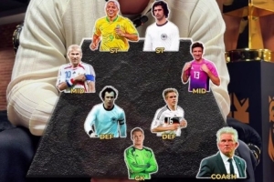 体育资讯4月5日讯 德国名宿施魏因施泰格评选了自己心中的梦幻七人制足球阵容,罗纳尔多&盖德-穆勒搭档锋线,齐达内坐镇中场,贝肯鲍尔镇守防线。